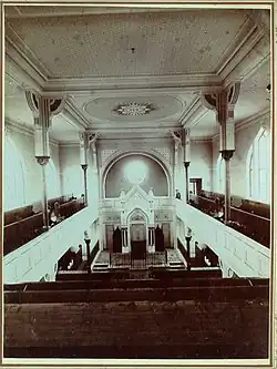 Das Gebäude hatte, wie auf Bildern und den Plänen zu sehen ist, mehrere Eingänge. Der Haupteingang im Westen führte zu einem Vorraum und von dem in den Hauptraum, den Männergebetsraum. Rechts und links davon waren zwei Türen zu Treppen, die zur Frauenempore führten. Die Empore umlief drei Seiten des Raumes. Lediglich die Ostseite blieb frei. Hier befanden sich der Toraschrein und davor die Bima. Diese Anordnung, bei der die Bima nicht in der Raummitte steht, ist für Synagogen des Reformjudentums typisch.