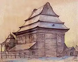 - ↑ Mathias Bersohn: Einiges über die alten Holzsynagogen in Polen, 1904, S. 5 und Foto S. 8.
