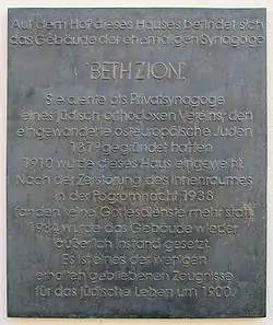- ↑ Alexander Glintschert: Synagoge „Beth Zion“. In: Anderes Berlin. 7. August 2012, abgerufen am 16. Juli 2017.