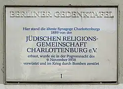 - Gedenktafel Synagoge Charlottenburg. BA Charlottenburg-Wilmersdorf, abgerufen am 16. Juli 2017.