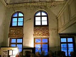Im Innenraum ist die Veränderung der ursprünglichen Fenster noch als unverputztes Mauerwerk erkennbar. Die Decke des Gebetsraumes ist noch im ursprünglichen Zustand erhalten. Auf blauem Untergrund sind goldene Sterne gemalt. Die Frauenempore sowie die Mikwe sind ebenfalls noch vorhanden.