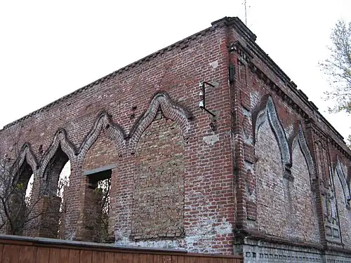 Die Synagoge ist aus roten Backsteinen gemauert. Nur noch wenige Wände stehen, Einige der Kielbogenfenster sind noch erhalten, aber teilweise zugemauert. Die Haupthalle hatte hohe Fenster; die Vorhalle mit darüberliegender Empore jeweils niedrigere.[2]