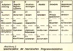 - ↑ a b c Johannes Müller (Hrsg.): Programmbibliothek zur systematischen Heuristik für Naturwissenschaftler und Ingenieure. Zentralinstitut für Schweißtechnik (ZIS), Halle (Saale) 1970 (= Technisch-wissenschaftliche Abhandlungen des ZIS, Nr. 69).