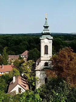 Von sieben Kirchen Szentendres, die bis auf die katholische Pfarrkirche (13./14. Jahrhundert) alle im 18. Jahrhundert erbaut wurden[6], sind noch heute vier im Besitz der serbisch-orthodoxen Kirche, nämlich die Kirchen: Pozsarevacska (Kirche Hl. Erzengel Michael), die Blagovestenska (Mariä-Verkündigungs-Kirche), die Preobrazsenszka (Verklärungskirche) und die Mariä-Entschlafens-Kathedrale, auch Saborna und Belgrad-Kathedrale genannt.