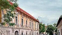 - Der Hauptplatz Fő tér ist von mehreren Barock- und Rokoko-Häusern umgeben. In seiner Mitte befindet sich eine 1763 als Danksagung für das Ende einer Pestepidemie errichtete Säule.