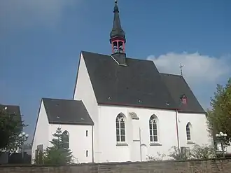 Römisch-Katholische Kirche St. Antonius von Padua, 1932 errichtet, nachdem seit 1901 für die 700 Katholiken der Großen Höhe in einer Notkirche Gottesdienst gehalten wurde.