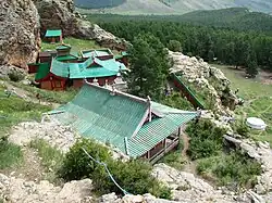 - ↑ Informationstafel am Eingang des Klostergeländes (auf Mongolisch)