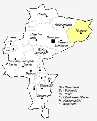 ![]() Lage von Tüngeda in Hörselberg-Hainich