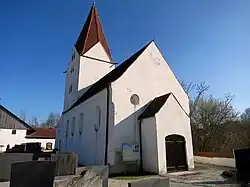 Das Ortsbild wird geprägt vom Turm der Filialkirche St. Peter und Paul, die von weithin sichtbar auf einem Bergrücken über dem Ampertal errichtet wurde.