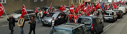Türkische Zuwanderer und ihre Familien stellen eine bedeutende Minderheit innerhalb der österreichischen Bevölkerung dar.[15] Laut Volkszählung 2001 lebten damals 127.226 türkische Staatsbürger in Österreich. (1,6 % der Gesamtbevölkerung) Davon lebten 39.119 in Wien, 19.911 in Niederösterreich, 18.838 in Vorarlberg, 17.226 in Oberösterreich, 16.017 in Tirol, 8.800 in Salzburg, 4.793 in der Steiermark, 1.280 im Burgenland und 1.192 in Kärnten.[16]