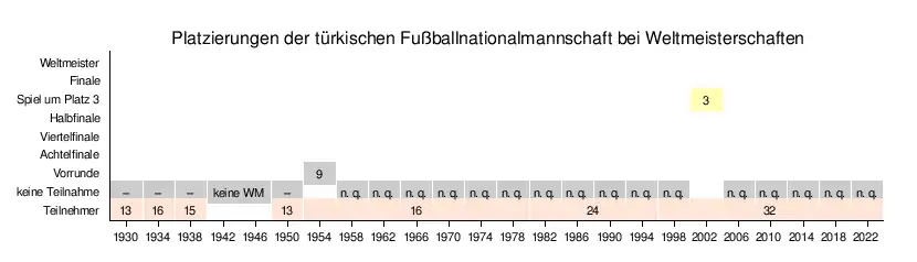 | 7 | 4 | 2 | 1 | 13:4 | +9 | WM-Vorrunde 1954, WM-Spiel um Platz 3 2002 | |