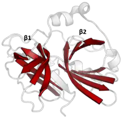 - ↑ Tyndall JD, Nall T, Fairlie DP: Proteases universally recognize beta strands in their active sites. In: Chem. Rev. 105. Jahrgang, Nr. 3, März 2005, S. 973–99, doi:10.1021/cr040669e, PMID 15755082 (englisch).
