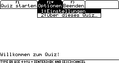 Sollte man (hier in diesem Beispiel) F1 (Quiz starten) auswählen, springt das Programm zum angegebenen Label "start". Möchte man unter einem Titel mehr auflisten (wie in F2), darf hinter dem Title-Befehl kein Label angegeben werden. Unter dem Title-Befehl müssen allerdings in solch einem Fall Items mit Labeln vorhanden sein.
