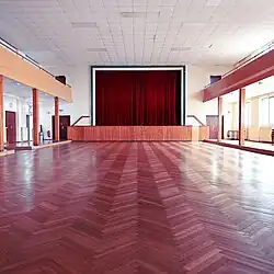 Die Turnhalle hat eine flexible Raumaufteilung. Dadurch sind eine Vielzahl von Veranstaltungen möglich. Im Inneren bietet die Halle Platz für bis zu 500 Gäste und verfügt zusätzlich über einen Konferenzraum, der etwa 100 Gäste aufnehmen kann. Der Charakter der Veranstaltungen reicht von Hochzeiten bis hin zu regelmäßig abgehaltenen Konferenzen. Derzeit sind Sanierungsmaßnahmen geplant.