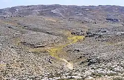 - Im östlichen Hinterland das Eyre-YüğIük-Bergland: Diese östlichen Partien des Taşeli-Plateaus umfassen die höheren, stark verkarsteten Kammregionen der Taşeli-Hochfläche südöstlich von Karaman mit oft weiten kahlen Kalkflächen z. B. in Umfeld und Vorland des 2474 m hohen Yüğlük Dağı.