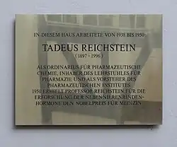 - ↑ Miriam Rothschild: Tadeus Reichstein. In: Biographical Memoirs of Fellows of the Royal Society, Vol. 45 (Nov., 1999), S. 451–467; Uwe Böhm: Reichstein, Taddeus. In: Werner E. Gerabek, Bernhard D. Haage, Gundolf Keil, Wolfgang Wegner (Hrsg.): Enzyklopädie Medizingeschichte. De Gruyter, Berlin / New York 2005, ISBN 3-11-015714-4, S. 1229.