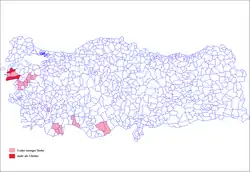 - Çanakkale: Akçeşme, Aykınoba, Çiftlikdere, Damyeri, Daşbaşı, Değirmendere, Denizgöründü, Elmacık, Gürecik, Kayadere, Kemerdere, Yenimahalle
