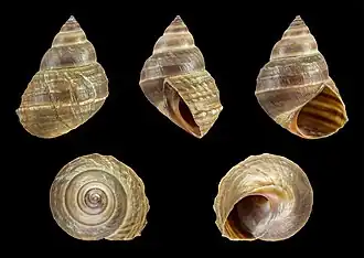 - ↑ Wilhelm Kobelt: Die Gattung Paludina Lam. (Vivipara Montfort) : neue Folge : in Abbildungen nach der Natur mit Beschreibungen. Systematisches Conchylien-Cabinet von Martini und Chemnitz, Bd. 1 Abt. 21a, S. 95–425, Nürnberg, Verlag von Bauer und Raspe (Emil Küster), 1909 Online bei www.biodiversitylibrary.org (S. 149/50).
