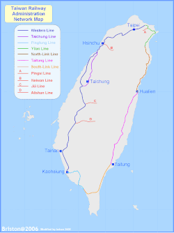 Die Hauptstrecke Taiwans bildet einen geschlossenen Ring um die Insel, außerdem gibt es drei Nebenstrecken (Pingxi-Linie, Neiwan-Linie und Jiji-Linie). Dazu kommen zwei 2011 eröffnete Zubringerstrecken, die die Bahnhöfe Hsinchu und Tainan der Taiwan High Speed Rail mit den jeweiligen Stadtzentren verbinden.