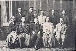 - ↑ Hintere Reihe in der Mitte Soyano Teruo (征矢野 晃雄; 1889–1929), vordere Reihe von links Takakura, Uemura, zweiter von rechts Kanei Tameichirō (金井 為一郎; 1887–1963), rechts außen Saitō Takeshi (斎藤 勇, 1887–1982).