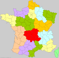 Vorschlag zur Reform der Regionen durch das Balladur-Komitee mit der Region Val de Loire (in grün) im Jahr 2010