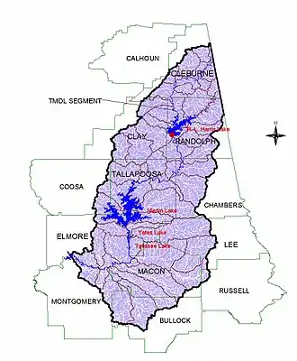 ![]() Einzugsgebiet des Tallapoosa Rivers in Alabama | ||