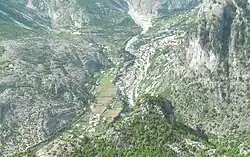 Gleich südlich des Dorfes vereinigen sich der Cem mit dem Cem i Vuklit, der aus einem östlichen Seitental kommt.