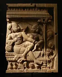 Tamilische Skulpturen reichen von eleganten Steinmeißelungen bis zu detailreichen Bronzeikonen.[7] Die Bronzestatuen der Chola-Ära werden als eine der größten indischen Beiträge für die Welt der Kunst angesehen.[8][9] Das Material für die tamilischen Skulpturen hat die Form derer nicht beeinflusst. Stattdessen hat der Künstler sein Werk so erschaffen, dass der Betrachter im Nachhinein nicht sofort wissen konnte aus welchem Material das Werk geschaffen wurde.[10] So wirken die Höhlenmalereien in Mamallapuram, als ob sie mit Edelsteinen besetzt wären. Ein populäres Motiv für Bronzeskulpturen waren vornehmlich die Darstellungen von Shiva in einer seiner Erscheinungsformen des Nataraja.