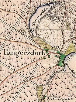 Das mittelalterliche Tangersdorf entstand wahrscheinlich im Hochmittelalter und wurde 1307 erstmals schriftlich als „Tangerstorp“ erwähnt, als es aus dem Besitz der Familie von Redern an das Kloster Himmelpfort kam. Die Bezeichnung geht auf den deutschen Personennamen Thankger zurück. Nach 1342 fiel das Dorf wüst und die Feldmark verwaldete. Die genaue Lage der mittelalterlichen Dorfstelle ist unsicher. Der Überlieferung nach befand sie sich an der Stelle des späteren Forsthauses (Lage) südlich des heutigen Ortes.