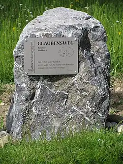 - Station 9, Stein in Baldensweiler: „Viele Wege führen zu Gott - einer davon über die vielfältigen Wunder der Natur.“ (Georg Maier)