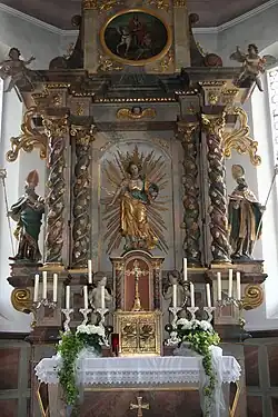1720 kam dann der Umbau zur heutigen Gestalt mit Neigung zum barocken Baustil und Weihe des neuen Hochaltars mit den Figuren des Hl. Konrad (links) und des Hl. Ulrich (rechts) auf den Seitenkonsolen. 1723 wurden die Seitenaltäre im gleichen Stil wie der Hochaltar mit den beiden von Andreas Brugger geschaffenen Ölgemälden „Tod des Hl. Josef“ (links) und „Die kleine Maria mit ihrer Mutter Anna“ (rechts) geweiht.