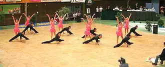 Der Gesellschaftstanz ist in seiner institutionalisierten Form geprägt durch das Welttanzprogramm mit den drei Musikrichtungen Walzer, Disco und Swing. Ergänzt werden diese durch regionale Genres, wie Latino und Tango.[17]