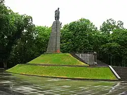 Am 10. Maijul. / 22. Mai 1861greg. wurde er in Anwesenheit unter anderem von Mykola Lyssenko, Wiktor Sabila[67] und Schewtschenkos Freund aus frühen Petersburger Tagen Iwan Soschenko[68] am Ufer des Dnepr beigesetzt, wie er es sich in seinem Gedicht Vermächtnis („Sapowit“) gewünscht hatte. Ihm zu Ehren ist dort, am Hang des (nach ihm benannten) Taras-Berges, eine Gedenkstätte errichtet.[17]