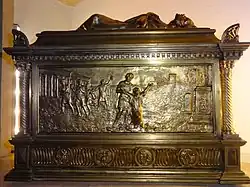 Reliquien: Man nimmt an, dass sich die leiblichen Überreste des Heiligen in Rom befinden. Tarzisius wurde demnach in der Nähe des Bischofs von Rom Zephyrinus oberhalb der Calixtus-Katakomben an der Via Appia bestattet. Die Quellen für diese Information sind die Ölliste von Monza (um 600 n. Chr.) und zwei Itinerarien.[2] Später wurden die sterblichen Überreste des Märtyrers Tarzisius in die römische Kirche San Silvestro in Capite überführt. Anschließend wurden sie in der Kirche Sankt Laurentius vor den Mauern an der Seite des hl. Laurentius und des hl. Stephanus verehrt.
