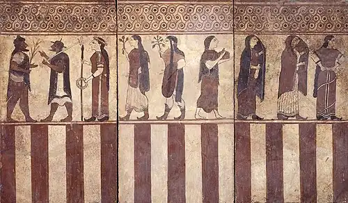 Der einzige namentlich gesicherte Tarquinier ist Cnaeve Tarchunies Rumach, lateinisch Gnaeus Tarquinius der Römer. Er ist im Gemälde des Tomba Francois aus Vulci überliefert ebenso wie seine Ermordung durch Marce Camitlnas. Das Gemälde stammt zwar aus der Zeit um 300 v. Chr., mehrere Jahrhunderte nach der Tarquinierzeit, ist aber älter als alle Annalistik und Pontificalchronik. Es wird angenommen, dass es auf eine ältere Vorlage zugreift.[18] Das Gemälde stellt die Ermordung des Königs dar, nicht aber den Sturz des Königstums. Es kann deshalb angenommen werden, dass Cn. Tarquinius nicht der letzte römische König gewesen ist.[19]