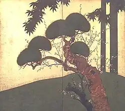 - ↑ „Shōchikubai“ (松竹梅図屏風) – „Kiefer – Bambus – Pflaume“ sind die „Begleiter in der kalten Jahreszeit.“ Sie werden, in einem Gefäß vereinigt, um die Neujahrzeit paarweise vor dem Hauseingang aufgestellt.