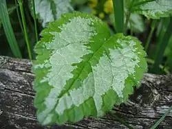 Die invasive Silber-Goldnessel (Galeobdolon argentatum) ist an der markanten Zeichnung ihrer Blätter gut zu erkennen