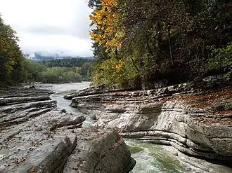 Der Tauglbach erodiert lagigen Kalkstein (2013) | ||