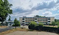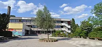 - ↑ Das Architekten-Trio war später gemeinsam auch bei der Planung der ab 1965 in Darmstadt erbauten „Neuen Künstlerkolonie in Rosenhöhe“ im Rahmen der Künstlerkolonie Mathildenhöhe. Zu Seidel und Hausemann vgl. die Internetseite des Darmstädter Nachfolgebüros SHP Architekten (auf shp-architekte.de, abgerufen am 7. Juli 2022).