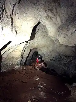 Im Inneren entdeckte man Knochen- und Zahnfragmente voreiszeitlicher Tiere, insbesondere von Mammutiden (Mastodon). Außerdem fand man Überreste folgender Arten: Südlicher See-Elefant (Archidiskodon meridionalis), zwei Arten von Pferden (Equus stenonis und kleine Equus sp.), zwei Nashorne (Stephanorhinus sp.) und Elasmotherium (Elasmotherium sp.), Riesen-Kamel (Paracamelus gigas), eine Hirschart (Arvernoceros verestchagni), Stiere (Leptobos sp.), Bison (Eobison sp.), Hasen (Hypolagus brachygnathus), Spiral-Antilope (Gazellospira torticornis), Pontoceros ambiguus, Stachelschwein (Hystrix vinogradovi), Hyäne (Pachycrocuta brevirostris), Ochse (Canis sp.), eine große Säbelzahnkatze (Homotherium crenatidens) und diverse Vogelarten. Einige Knochen sind gespalten, sodass man von der Anwesenheit von Hominiden ausgeht. Unerwartet fand man in der Höhle auch Knochen einer urzeitlichen riesigen Laufvogelart, die 1990 bereits in Georgien nachgewiesen wurde. Sie war mit einer Höhe von etwa 3,50 m und einem Gewicht von etwa 450 kg ähnlich groß wie die Elefantenvögel von Madagaskar, war jedoch ein schnellerer Läufer. Eine Forschergruppe der Russischen Akademie der Wissenschaften um Nikita Wladimirowitsch Selenkow ordnete die Knochen der Art Pachystruthio dmanisensis zu, die 1990 von Nikolai Jossifowitsch Burtschak-Abramowitsch und Abesalom Vekua als Struthio dmanisensis erstbeschrieben wurde.[2][3]