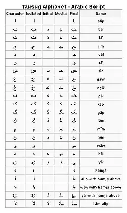 Tausūg (Bahasa Sūg; Jawi:بَهَسَ سُوگ; Malaiisch: Bahasa Sūlūk) ist eine austronesische Sprache, die in der Provinz Sulu auf den Philippinen und im östlichen Teil des Bundesstaates Sabah, Malaysia, vom Volk der Tausūg gesprochen wird.[1]