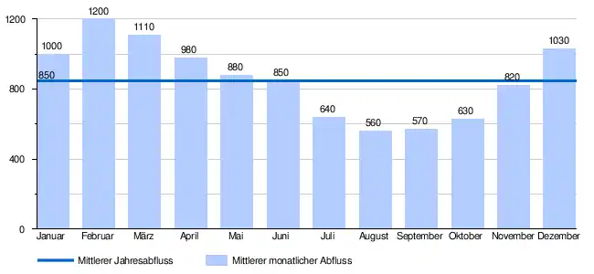 - ↑ Mittlere Abflüsse (m³/s) und Abflussregimetyp für das Gewässernetz der Schweiz (Bundesamt für Umwelt BAFU)