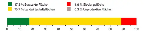 Es besteht zu 17,3 % aus bestockter Fläche, zu 70,7 % aus Landwirtschaftsfläche, zu 11,6 % aus Siedlungsfläche und zu 0,3 % aus unproduktiven Flächen.