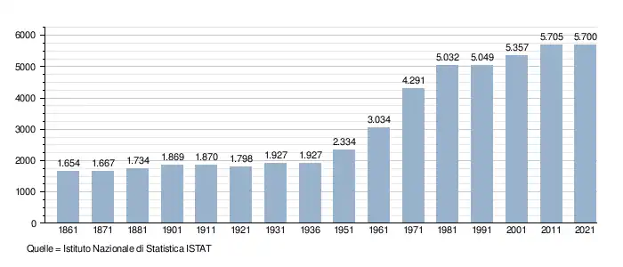 - ↑ Bilancio demografico e popolazione residente per sesso al 31 dicembre 2024. ISTAT. (Bevölkerungsstatistiken des Istituto Nazionale di Statistica, Stand 31. Dezember 2024).