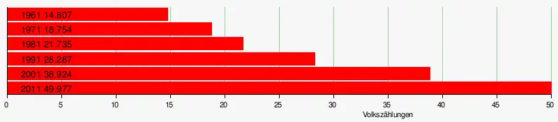 | Volkszählung 1961 | Volkszählung 1971 | Volkszählung 1981 | Volkszählung 1991 | Volkszählung 2001 | Volkszählung 2011 | |||||||