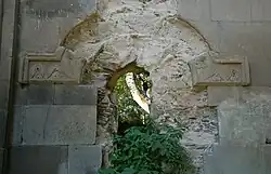 An der Nordwand des Westarms oder am nordwestlichen Pfeiler befand sich einst das aus einem grauen Steinblock herausgearbeitete Relief des Herrschers Aschot Kuchi.[8] Die 1,13 Meter hohe, blockige und wenig detaillierte Figur Aschots ist im Hochrelief ausgeführt. Der Stifter hält ein Modell der Kirche in seinen ausgestreckten Händen. Das Gesicht und ein großer Teil des Körpers waren mehrfach Schlägen ausgesetzt und sind wie das großteils abgebrochene Kirchenmodell stark beschädigt. Dennoch ist bei der realistischen Gestaltung zu erkennen, dass die Figur einen Bart und auf dem Kopf einen Kabalachi, ein aus grober Wolle gewebtes, langes Kopftuch trägt. Aschots Füße stecken in Schaftstiefeln, sein langes Gewand besteht ebenfalls aus dickem Stoff und ist mit Löwenabbildungen bestickt. Unter dem halboffenen Gewand, das von einem breiten Ledergürtel fixiert wird, schaut ein weiteres Kleidungsstück mit rautenförmigen Mustern hervor.[9]