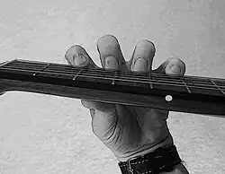 - Es besteht kein Kontakt zwischen Handfläche und Griffbrett