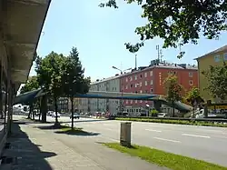 | Fußgängerbrücke über die Tegernseer Landstraße, stadtauswärts gesehen | |