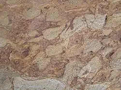 Eine Tektonische Mélange (franz. mêler: mischen) ist eine kartierbare geologische Gesteinseinheit, die keine durchgängige Schichtung aufweist und aus Gesteinskörpern sehr verschiedener Größe besteht, die in einer feinkörnigen, meist stark deformierten Grundmasse liegen.[1] Die in oft chaotischem Durcheinander liegenden kleinen, großen und bis kilometergroßen Gesteinsblöcke sind verschiedener, sowohl autochthoner als auch allochthoner Herkunft. Charakteristisch für tektonische Mélanges sind metamorphe Reste von ozeanischer Kruste mit Ophiolithen, Sedimente der Tiefsee und Gesteine des Kontinentalabhangs und des Schelfs.