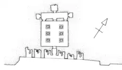 Vor dem Tempel liegen südlich und nördlich noch zwei kleine Kapellen, von denen die nördliche unbedacht ist und ein Sonnenheiligtum darstellt. In der Mitte befindet sich ein Altar mit vier die Sonne anbetenden Pavianen, der von zwei Obelisken flankiert wird. Die nördliche Kapelle stellt möglicherweise ein Geburtshaus dar.[32]